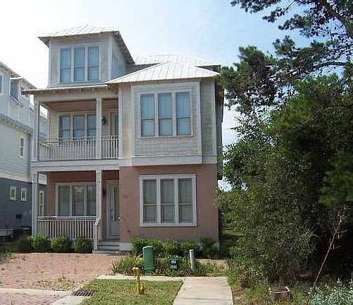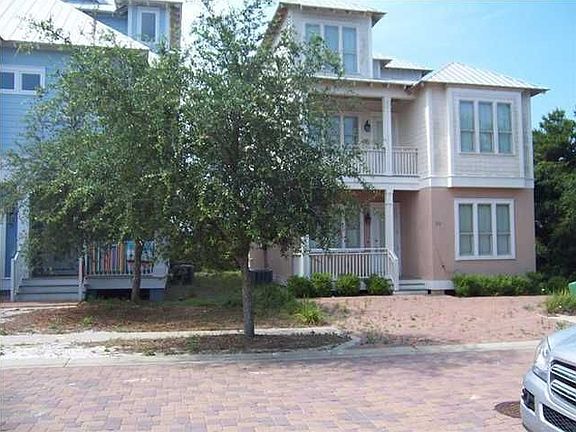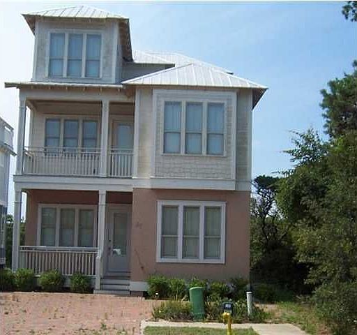 Foreclosure on South side of 98 in the quaint community of Pompano Place in Inlet Beach and just a few blocks from the beaches and Gulf. The home has views of the Gulf of Mexico from the second and third levels. There are three bedrooms on the first level, one has is own private bath and could be a second master, the other two share a Jack and Jill bath. There are two laundry rooms, one on the first floor and one on the third level for Master suite. When you walk up to the second level, there is an open floor plan with a large great room with gas fireplace and kitchen with granite counter tops and stainless appliances. There is a separate den, bunk room or office on this level as well. Walk out on the deck and enjoy the gulf breezes and view of the Gulf. The third level is a private master suite with a spectacular view from the private deck, luxurious master bath with jetted tub, and separate shower. This home is a must see! Pompano place is a small community with brick paved streets and pool. Room dimensions and sq footage are approx.