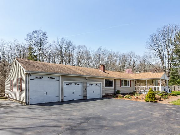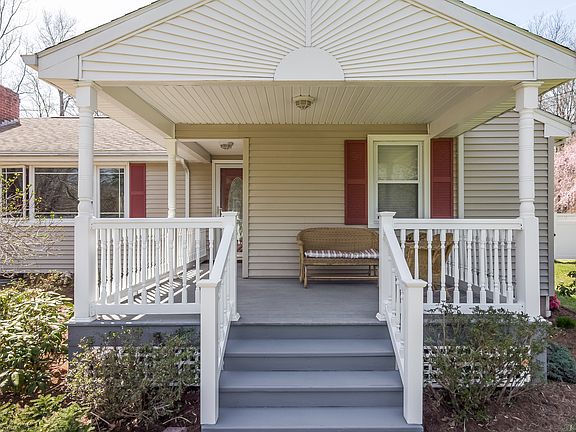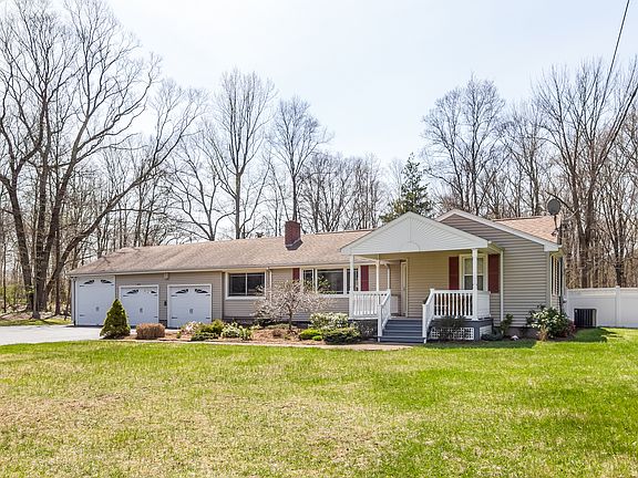Immaculate Ranch bordering water company property. Flat level lot, with privacy, but located close to shops! This adorable ranch welcomes you with a covered front porch and nice landscaping around the exterior. Inside 3 bedrooms with new doors, trim, paint. Full bathroom with neutral colors, and fresh paint. Kitchen is open to eating area, white cabinetry, granite counters, a very unique stone floor which adds dimension and character to this room. Large window over looking the back yard area. The living room has pine built in shelves and cabinetry surrounding the stone fireplace. Hardwood flooring through out much of the 1st floor. The breezeway is enclosed allowing for office area, or mud room. The lower level is over 400 sq feet of family room space, carpet, lighting, and drop ceiling. There is a full bathroom down there and another room of about 400 sq feet in case you want to finish more space, use for storage or simply a work out area. The garage is amazing! 2 average size bays and a 3rd bay that is over sized for larger vehicle, boat, or additional storage-- or a Man Cave you always wanted! A very unique offering to a ranch style home! Located in a neighborhood setting but private to the back yard, there is a screened in sun porch which leads to a patio area for out side entertaining. This house has central air-conditioning. The owners have kept this house meticulous. It is a pleasure to show!