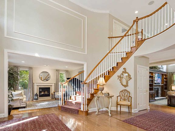 Welcome home to your over 1 acre treed and private oasis boasting over 4,000 of above square feet living space and another 2,400 square feet of additional living space in the finished basement that includes a full bathroom, custom bar, exercise room, potential 6th bedroom, and fun media/game room area with entry from garage doors to go outside.This 5 bedroom 4.5 bathroom estate home has a wide open floor plan with vaulted ceilings and moldings throughout. The downstairs bedroom could be set up as an office and leads to the custom built in hot tub sunk in to the IPE brazillian hardwood custom deck. A beautiful sunroom off the kitchen and eat in area was added onto the original plans when the house was built and overlooks the beautiful landscaping and pool area. 3 zones of heat and air,