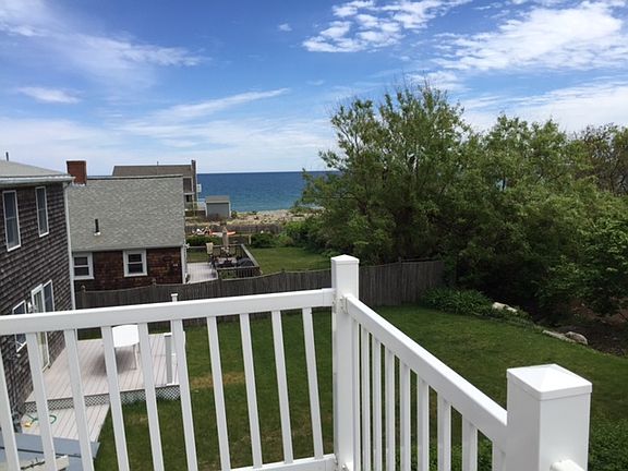 Rexhame, abuts the trust, ocean views. This 3 bedroom 2 bath house with 4 season sunroom was rebuilt in approximately 1970. Has large updated, gas, eat in kitchen. Upper level has 3 bedrooms 1 bath. Ocean views from kitchen, master bedroom and deck. Large level backyard with brook. 1 car detached garage, ample off street parking. 6 houses from the beach. Living room has new laminated floors. Partially finished basement. Flood insurance not required as per owner.