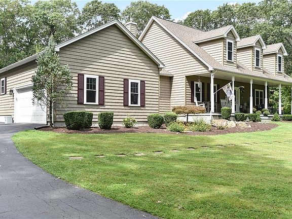 Exceptional Cape Cod in Saunderstown at 'The Preserve at the Oaks.' The first floor boasts a large, sun-filled primary bedroom with spa-like bathroom, walk-in shower and double sinks with granite countertops. There is also a walk-in closet and exterior door to access the expansive deck. The first floor boasts hardwood floors throughout. There is a chef's dream kitchen with a 2019 48" Thermador dual fuel stove with a grill & griddle, a walk-in pantry, and large island. Relax by the double-sided stone gas fireplace or on the front porch listening to the birds chirping. First floor has a bedroom that is perfect for a home office. The second floor features hardwood floors, two large bedrooms, a nook with built-in bookshelf, media room & a large bathroom with double sinks. The exterior of the home features underground sprinklers, a large driveway with plenty of parking, and the home is set back off the road for privacy and serenity. There is also a generator plug with transfer switch. Large, unfinished basement for future expansion. Located less than 2 miles to the University of Rhode Island, 8 Miles to Narragansett Beach, and 6.5 miles to downtown Wakefield, this home is close to all that South County has to offer Only 4.2 miles to the Kingston Train Station and 7.2 miles to Wickford Junction Train Station. If you are looking for a large family home with plenty of room and privacy, yet close to everything, this is the one you've been waiting for
