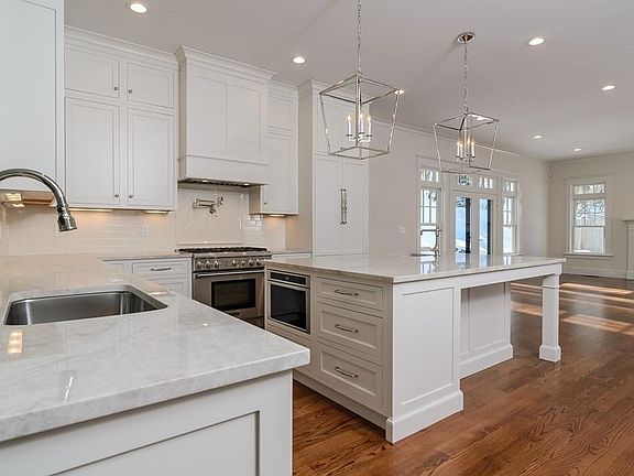 Superb new home beautifully appointed and carefully crafted by top building/design team. The interior has crisp, stylish lines and a fabulous open floor plan that creates an ideal flow for easy living and entertaining. The stunning white kitchen cabinetry is complemented by top appliances, beautiful stone and tile and a smartly designed walk-in pantry with wine cooler and prep sink. A spacious and warm fireplaced family room is perfect for relaxed, casual gatherings. Celebrate in the inviting living and dining rooms. A wood paneled library provides an outstanding home office. The second story has five generous bedrooms and each family bath is tasteful and well designed. The master bath is luxurious and complete with double sinks, soaking tub and walk-in shower. A finished lower level includes a playroom and full bath. Many quality exterior features such as copper and cedar shingles enhance the distinctive design. Set on peaceful cul de sac in beloved neighborhood