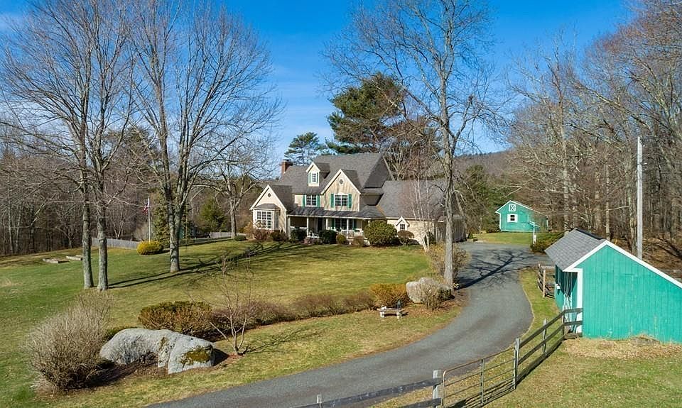 Gracious curved drive entry leads to the country perfection of this custom designed Victorian Farmhouse beautifully set in the middle of 10 Acres! With open land, fenced pasture, inground pool with cabana, birdwatching cabin by the stream, outbuildings for horses, sheep and chickens, there is something for everyone! The visually striking home has a grand covered porch, sun deck, balcony & features large classic rooms. First floor gorgeous fpld Formal Living Rm w/hdwds, windowed box bay and tray ceiling detail, bright Family Room w/stone fpl & french doors to deck, spacious Formal DR with bank of windows, hdwds and oversized center isle kitchen loaded with cabinets. Spectacular 2nd floor skylit cathedral Master BR with exposed beams, french doors to balcony & full BA w/huge new tiled shower, 3 additional large Bedrooms & 2nd full Bath. Plus a finished 3rd floor "Play Room" & lots of walk-in storage. Awesome property!