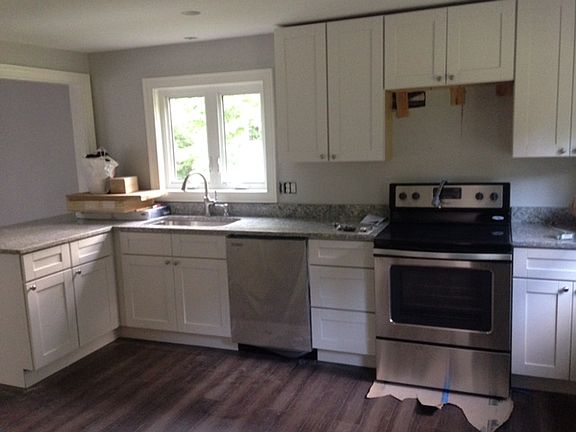 Renovation is nearing completion on this fabulous 4 bedroom, 3-bathroom Cape located in a desirable & convenient neighborhood in Holderness. Yet, just 3.5 miles to downtown Plymouth and minutes to I-93. Enter the open concept layout, leading to the brand new kitchen adorned with new shaker style cabinets, granite countertops, bar area & new stainless steel appliances. Cook breakfast while you overlook the fireplace dining area and expanded living area, with beautiful hardwood floors throughout. Have the option to separate this living space with 2 beautiful sliding barn doors or leave it open for entertaining and have your guests enjoy the full length back deck overlooking 3.5 acres of privacy. An updated bathroom and bedroom complete the first floor, along with optional washer/dryer hookup. The second floor offers a spacious master suite, walk in closet and adjoining a newly renovated bathroom, and an additional 3rd bedroom. The extended garage accesses the bottom floor, an additional 1100 square feet, with a full bathroom, kitchen area, woodstove and laundry room - ready for your additional touches. Great for an in-law apartment or just for extra space. Professionally landscaped level lot with 2 driveways, and new shed. There still may be time to make personal selections… End of August completion!!