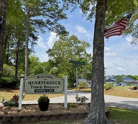 Welcome to 27 Quarterdeck Townes, a charming single-story end-unit townhome located in the established waterfront community of River Bend in New Bern, NC. This 2-bedroom, 2-bathroom home offers an inviting layout with tall ceilings, abundant natural light, beautiful luxury vinyl plank flooring, and a spacious living room that seamlessly flows into the formal dining area. Just off the living space, a screened-in sunroom provides a relaxing spot to enjoy the outdoors. The open kitchen features a peek-through window to the dining area, quartz countertops, a custom backsplash, and sleek black stainless-steel appliances. At the front of the home, you'll find a spacious guest bedroom with a full bathroom conveniently located off the hallway. The primary suite is nestled at the rear of the home, offering a large walk-in closet, a cozy seating alcove, a private full bathroom, and sliding glass doors leading to the screened-in porch. Set in the serene community of River Bend, residents enjoy a coastal lifestyle with access to beautiful waterfront views and a golf course. Conveniently located minutes from historic downtown New Bern.