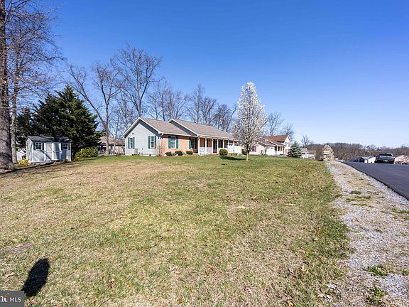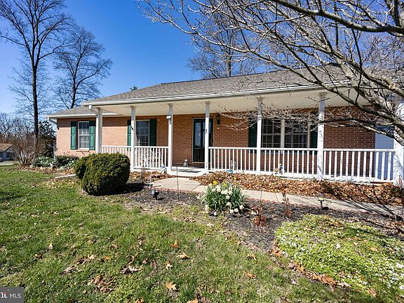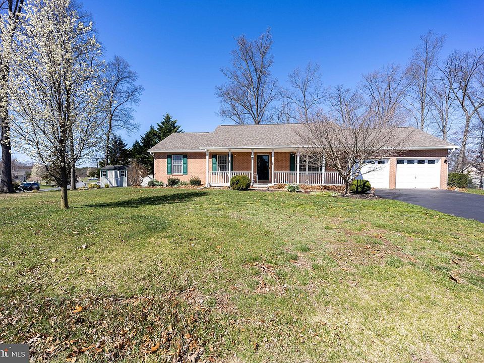 Competitively priced to sell quickly! Seller is offering to re-paint living room, dining room, hallway and primary bedroom prior to closing . Beautiful brick front ranch style home on a corner lot. Built by Ayers (A&A) Builders this home features gleaming hardwood floors throughout. The large dining room features a closet with shelving for all your dishes and serving ware. An adjacent sunroom with BBE heat provides year round enjoyment. The galley kitchen offers lots of cabinetry, meal prep space and stainless steel appliances. Separate laundry room leads to the two car garage or rear deck. The bedrooms are privately located and are ample sized for rest or work spaces. Primary bedroom offers an en-suite full bath. Outside you can enjoy sunrises or cool Summer evenings on the covered front porch. The rear yard is fenced for pets or play. There are two storage buildings for your specific use - one could be converted to a play house or gardening shed. Conveniently located in South Berkeley County for easy commutes into Northern Virginia. New roof in 2019, New heat pump in 2018 and new water heater has just been installed. Co-Listing Agent is related to seller.