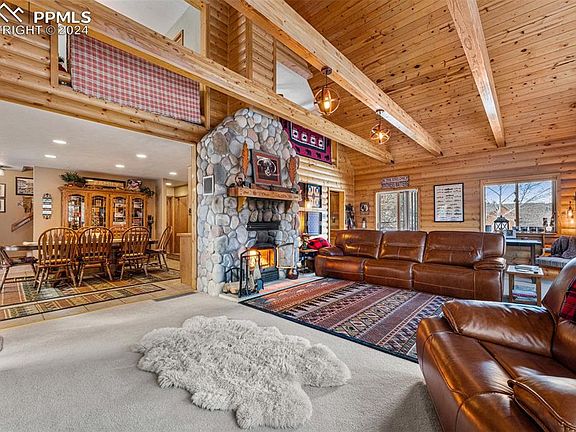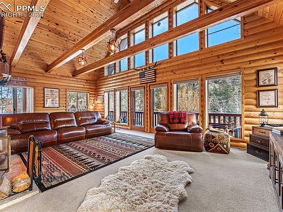 Welcoming and warm cabin nestled on a private lot bordering 11 acres of open community space and BLM land in the quiet Lakemoor West valley along Four-Mile Creek.The property includes a guest cabin above a spacious 3 car garage outbuilding which could potentially provide rental income. Main cabin has lots of updates including new light fixtures, ceiling fans, barn doors, updated full bathroom on upper level, new toilets and fixtures in all remaining bathrooms, renovated mudroom/basement along with a renovated basement bathroom. There’s also a new water heater, 2 new garage door openers with keypad, NEST remote heating system, plus tons of storage space throughout each level. Cozy up to the wood burning fireplace inside or the fire pit outside! Enjoy your days and nights taking in the fresh air from the wrap-around deck with a gazebo. The main cabin has a 2 car attached garage. The guest cabin has a 3 car attached heated garage with a built-in workbench & shelves. The property has a well & 2 septic tanks. Ask me about the Sacred Buffalo Rock as seen in the pictures! More pictures available on the virtual tour link. *Just 20 minutes from Cripple Creek, well known for its mining history and casinos, restaurants, stores, waste disposal, plus more. Only 10 minutes to Paradise Cove Hike/Recreation area located in Guffey. Enjoy exploring Florissant Fossils Beds, Gold Belt Scenic Highway, Woodland Park, and Colorado Springs! *Fishing: Four Mile Creek right across from the driveway is stocked with trout each year by the Lakemoor West POA. *Nearby reservoirs - Eleven Mile Reservoir, Spinney Reservoir, Antero Reservoir - lots of hiking in Mueller State Park. ***SOLD AS IS.