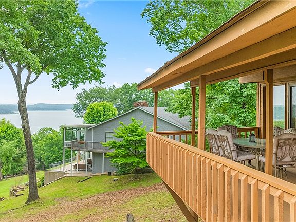 Expansive view of Beaver Lake, neighborhood lake access, and boat launch. This home is ready to host large gatherings of friends and family for priceless time together on the Beaver Lake in over 4,700 square feet with five bedrooms, four bathrooms, walkout basement, wet bar, exercise room, three covered decks, covered patio, a formal dining room and three garages (one with separate drive access for boat storage). The Runnymede community offers residents lake access and a paved nature trail. A boat ramp is located at the end of Dearhurst Rd. Many Runnymede residents have golf carts or side-by-sides to enjoy all the sights and amenities. AirBnBs are popular in this area. Walmart and Instacart deliver. All of these features, along with its proximity to Rogers & Bentonville, make Runnymede one of the most highly desired lake communities in Northwest Arkansas.
