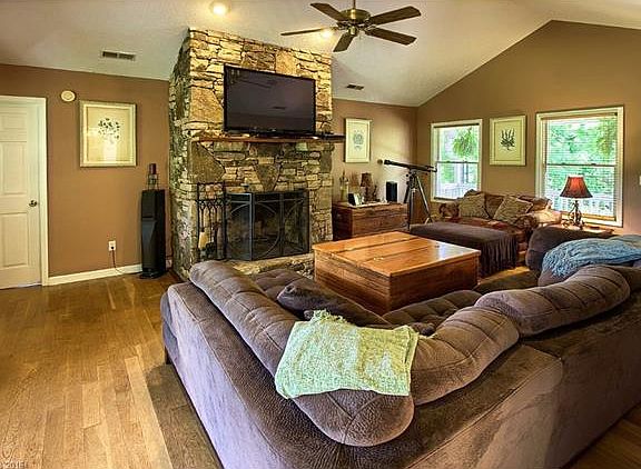 Picturesque mini farm setting with pasture, large trees, rolling hills and Pinnacle Mt views. Enjoy coffee and smores with friends around your backyard firepit. Cozy and totally private covered back porch with swing. Never be cold in winter with the stone woodburning FP in living room, Buckstove in kitchen and gas log FP in family room. Living room/Master suite is later addition. HW floors throughout most of house. Cathedral ceiling in living room, Some new cabinets just installed in kitchen, hall bath with new flooring, commode and sink. Tile in family room and gas logs in fireplace. Don't miss the study off of the family room and additional deck. Separate outbuilding with 3 CP bays and storage, 2 septic systems on property--one is for washing machine. Fenced pasture perfect for pony. Don't miss drone video for full view of property!! Enjoy.