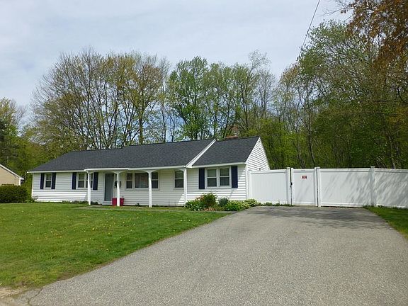 Surprise inside..This large 3 bedroom ranch has more rooms than you would expect.. From the flexible floor plan at entrance of a living or dining room to the cozy fire placed family room, an extremely spacious cathedral ceiling master suite with laundry and full bath, this home contains..Two full baths, Central AC, recently remodeled bathroom, recently replaced roof, hot tub in a three season porch, 6 foot vinyl stockade fenced back yard, shed, and on a quiet street next door to Reo Rd Park with a basketball court, tennis wall, and new playground equipment. This home also backs up to conservation land and local hiking trails are within easy walking distance.