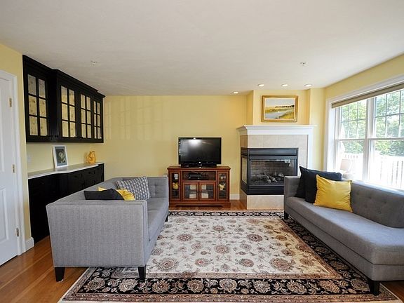 Luxurious End unit - 4 level townhouse - with gourmet kitchen offering bountiful cabinetry, granite countertops and breakfast bar opening to spacious dining area and large living room. Many locations in this home overlook magnificent sunrises, sunsets, and ever changing cloud formations. It's special living here! Open slider from the dining area to enjoy the grand deck with views as far as Boston. 5 - yes 5 upscale bathrooms!! 2 gas fireplaces. Note the high quality throughout and gorgeous hardwood floors. Several picture windows throughout as well as high ceilings. Spacious Main bedroom with opulent bath and oversized walk in closet and bonus second closet, and more incredible views from the picture window. The 2nd bedroom is the size of most primary bedrooms with a full bath incorporating a Nantucket vibe. The 3rd floor is super HUGE including an office area, work-out area, reading nook and queen bed with adjoining bathroom. Expansive family room with patio door will impress.