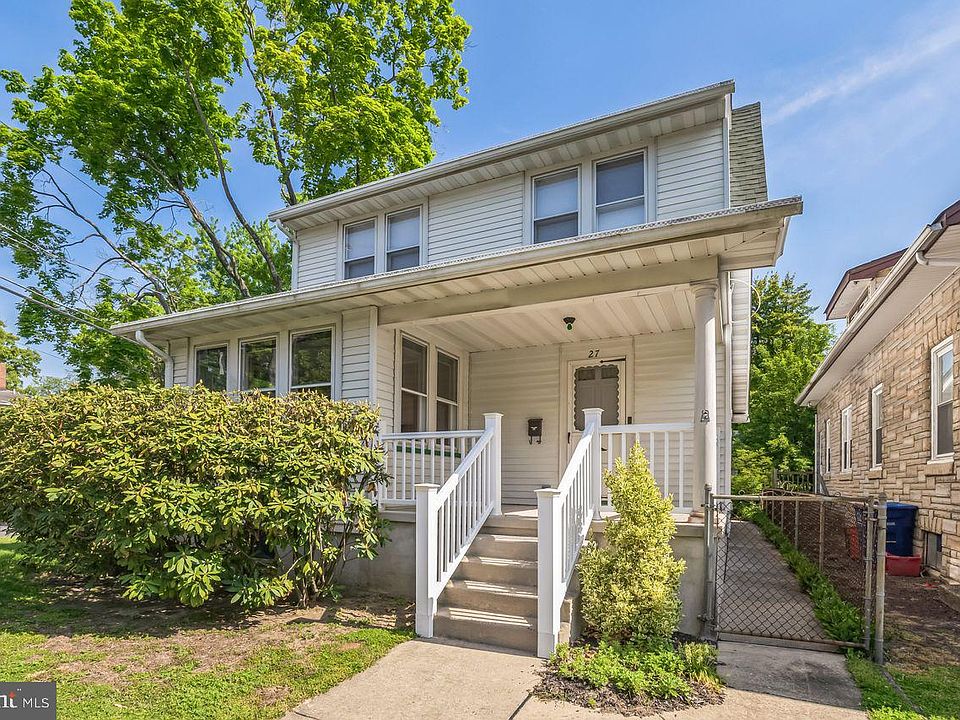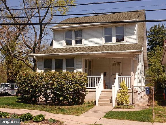 Multiple Offers- Please Best and Final Offers by 4pm Tuesday May 23, 2023 Charming Characteristics of a 1930 Classic in Historic Mount Holly. Very well maintained. Mature Landscaping. Crown Moldings, extra wide baseboard trim and Refinished Hardwood Floors throughout. The 2nd story has three bedrooms and updated bathroom with walk-in tiled shower, deep linen closet, a cedar closet in the hall, plus extra storage in the walk-up 3rd story attic. The First floor has a covered front porch that faces Ridge Ave. Large living room, separate formal dining room and heated sun parlor with glass doors that open from the living room. In 1984 an addition was put on the back of the house making a nice tile floor and bay window entrance from the detached two car garage. A full bathroom, cedar ceiling, tile flooring, Spa Hot Tub, self closing sky light, shower stall and leu. The Kitchen was also renovated at that time; Tile floors, Tile back splash, double stainless steel sink, amble cabinets, walk-in pantry and includes all the appliances. The full basement is amazing space, with high ceiling, 2 storage rooms, built in cabinets, double sink and laundry. Washer and Dryer are included. There is roughed in plumbing for a bathroom. Notice the newer gas fired Boiler and Hot water heater which is vented to the outside. A Side door leads to the walk way that runs from the front of the house to the back patio. The detached 2 car garage, has extra storage in the loft, plus additional built in gardening cabinet. The property is accessible from Caley St,. since this property sits on a corner lot. Parking in front of the garage or on Caley St. The back entrance is the most commonly used door. The perennial gardens give a variety of seasonal blossoms. Easy location to Virtua Hospital, Joint Bases, shopping and Mount Holly Historic District.