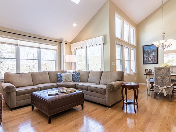 This stunning and well maintained "U" model home at Winslowe's View in The Pinehills overlooks the 12th tee of the Nicklaus golf course. Spacious three bedroom, three and a half bath home, filled with wide plank hardwood floors, 2 gas fireplaces, and a first floor master suite. Family room with vaulted ceiling, skylights, hardwood floors and slider to deck with golf views. Custom painted living room with hardwood flooring, gas fireplace recessed lighting and crown molding. Finished walk-out lower level with a large great room, fireplace, bedroom, large bath, and cedar closet. Beautiful landscaped courtyard with lots of privacy off the deck. New roof, new washer and dryer, updated features in bathrooms, kitchen, newly painted bedrooms and more.