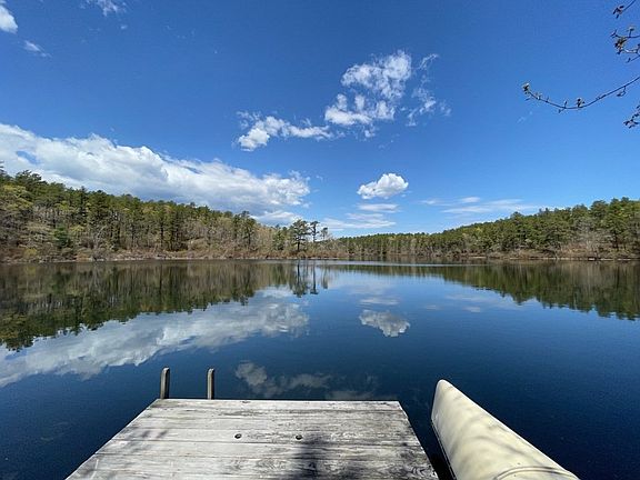 Beautiful lakefront home! Private dock/steps to Triangle Pond. Enjoy Swimming, boating, fishing at the peaceful & picturesque Triangle Pond. Enjoy your morning coffee at the mahogany deck overlooking the sun-filled backyard or relax at the peaceful front porch with a cute comfortable swing. Pond views from nearly every room! 2 Story foyer with open hallway overlooking kitchen and dining room boasting skylights. First floor master bedroom with master bath and access to the deck. Front to back living room with hardwood floors, fireplace, pellet stove, French doors to a den/office. The 2nd floor features 2 bedrooms and a full bath. The lower lever walk out basement has additional family room and a laundry room. Central AC, new generator. Walking distance to David Alper Nature Preserve. Close to beaches, Cape Cod canal, shopping, restaurants, and only 3 miles to Cape Cod!