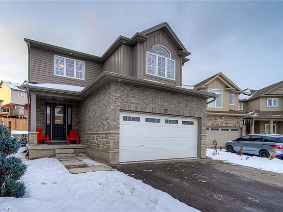 NEWLY BUILT!!! NOTHING TO DO BUT MOVE IN! Welcome to 27 Rivertrail Ave. This gorgeous 2 story detached home is great for commuters or families looking to upsize. The exterior is finished in gorgeous stone and brick and a covered front porch. The beautiful kitchen features new stainless steel appliances, bright white countertops and cabinetry, plenty of counter/storage space, a large pantry, and a breakfast bar that overlooks the living and dining room. The dining room has sliders with access to your backyard. The spacious bright living room has many windows to allow in natural light and a cozy gas fireplace to keep you warm during those winter months. Upstairs you have a cozy reading nook or a place to set up your home office, 4pc bathroom, and 4 good-sized bedrooms including a master bedroom with a 5pc ensuite and walk-in closet. The basement is unfinished and is awaiting your creative ideas. Lastly, the backyard is mostly fenced and great for entertaining your friends and family. Minutes from Chicopee Ski Hill, Bingeman's, Breslau Airport, and HWY 7/8. Book your private showing today!