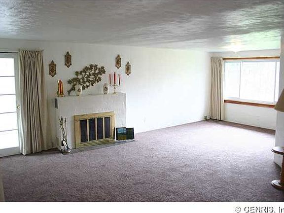 Wonderful ranch by RIT with great mechanics and exc. condition on beautiful half acre lot! Newer architectural roof, vinyl siding, new windows, plus breezeway and large 2-car att. garage with openers. Open living/dining room combo with fireplace, efficient eat-in kitchen, two bedrooms and bath on the main level, plus a full walk-out finished lower level with big family room with fireplace, third bedroom or den/office, and half bath. New carpet and laminate flooring. Stove, refrigerator, washer and dryer included. Rear patio overlooks large, beautiful yard. Super value.