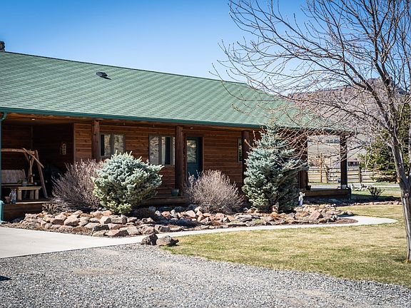 This Wyoming mountain retreat sits on almost 5 irrigated acres in the heart of the Wapiti Valley & has everything you need for short visits or year-round living. It has two master suites, a rock fireplace, two decks with stunning porch swing views, lots of wildlife, loafing shed/pasture for the horses, RV parking w/ hookups & a massive 60'x40' shop with a bathroom for all your recreational toys!