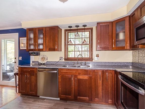 Beautiful home located in neighborhood setting of similar homes. Main level features: an open layout, an updated cherry kitchen with silestone counters, stainless appliances, under counter lighting & tile floor is open to a formal dining room with atrium door to a vaulted screened porch. Vaulted hardwood living room with fireplace, 2 large bedrooms and an UPDATED full bath with granite counters and tile tub/shower. The lower level has a family room with wood stove and atrium door to patio, 3rd bedroom with new floor, an office and a generous mudroom with atrium door to private deck and an UPDATED full bath with granite counters and tile floor. Other features include: central AC, 2-car garage, deck, patio, 2 sheds, lawn irrigation, Anderson windows and more! Set on wooded private lot with nice back yard including fire pit & koy pond. Convenient to highways and shopping.