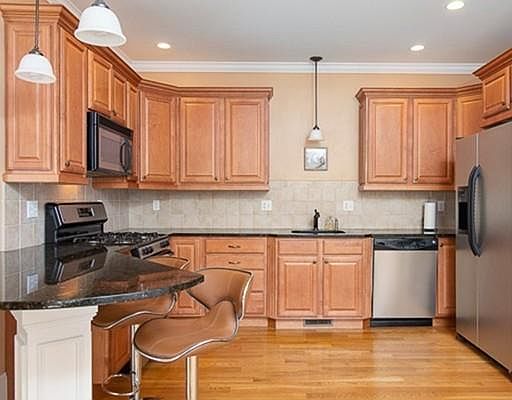 Nothing to do but move in; this 2 bed/2 full bath condo is in absolutely perfect condition! Highly desirable open floor plan with granite counters, breakfast bar, stainless steel appliances and beautiful high end cabinets! Generously sized master with huge, custom walk-in closet and gorgeous bath with tiled shower & glass door. Two private entrances, two off street parking spots and also featured in this spectacular unit - Central AC, hardwood floors, extra basement storage, central vac, crown moldings, security system & in-unit washer/dryer! All of this just a stones throw from the amazing Moody St, restaurants, shops, commuter rail, express bus & the Charles River! You won't be disappointed by this entire condo building inside & out, it's immaculate!