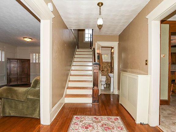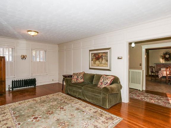 CLASSIC COLONIAL! Beautiful detail and lovingly maintained by long term owner. This home is loaded with charm and well proportioned rooms. Living room with hardwood floors, fireplace and molding detail with french door to beautiful sunroom. Large kitchen with open concept to dining area with an ideal set up for entertaining. First floor laundry room. Turned staircase with Palladian window. Large master bedroom with full bath and ample closet space. Two additional bedrooms with refinished hardwood floors. Full bath has been updated with vaulted ceiling. Third floor contain a great bedroom get away space with vaulted ceiling and half bath (plumbing in place to reinstall original claw-foot tub). Oversized garage with storage/work room attached. Deep lot goes to the the next street. Brick patio. Newer roof. Replacement windows. Convenient location close to shopping and highway access.
