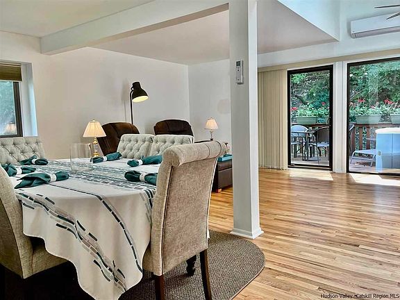 Delightful, newly renovated Townhouse within minutes of Kingston's Rondout Creek Waterfront District offering boating, marinas, restaurants, cafes', dancing, music and shops. Freshly painted interior boasts gleaming hardwood floors, vaulted ceiling, vinyl replacement windows, brand new air conditioning/heat pump unit, ceiling fan and rear deck with recently installed auto control awning to shade you on those lazy, sunny afternoons. Enjoy efficient, new updates in kitchen including cabinets, countertops, flooring and energy star appliances. Convenient, main floor half bath sparkles. The second level offers two oversized bedrooms with master walk in closet, easy maintenance laminate floors and full bath with expanded walk in shower. All renovations and updates completed within the past 2 years.