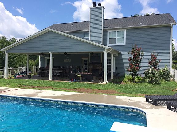 Two story home with Hardy siding. Salt water pool, 700 sf covered patio with fireplace. Hardwood floor in living, dining, kitchen and family rooms. Tile in full baths. Carpet in bedrooms. Fireplace in living room, open floor plan. First floor master suite. Laundry on both levels. Large second floor laundry room. Four bedrooms have walk in closets. Additional walk in closet on each level.