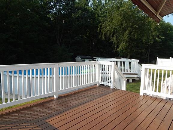 The perfect combination -- vacation at your beautiful home but still be located just minutes away from shops and restaurants. Meticulous, three-bedroom home with 2.5 baths. Hardwood floors in the living and dining rooms. Spacious kitchen with stainless steel appliances. Central A/C to keep you comfortable in the summer plus central humidification to keep those dry winters away. Enjoy the privacy of your backyard with multi-tiered decks and awning to stay cool on those sunny days. Take a dip in your above-ground pool and soak in the hot tub on those chilly nights. Great neighborhood with sidewalks located near major routes for an easy commute!
