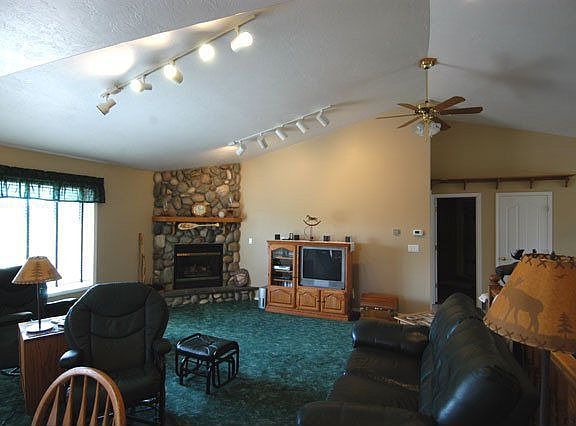 If you're a nature lover don't let this home get by without serious consideration. It's not uncommon while enjoying the hottub on the 65 ft deck to hear and see wildlife. Deer frequent the 10 ac property. Guests will enjoy the shelter in the private park surrounded by natural trees and smaller pine. The shelter has power and water plumbed for convenience. As you enter the Great Room with vaulted ceilings you will feel right at home. The kitchen is open to the living area with a large pantry. Mst Bedroom is located on the main floor with French doors that open to the back deck and hot tub. A full walk-in closet, Mst bath with 2 person jetted tub and tiled shower. Both Mst bedroom and Mst bath are wired for ceiling speakers to hook up to a stereo. The Full Walkout Basement with Lg FamilyRoom includes a Wet Bar complete w Oak Cabinets. 2 Story 40X40 Shop has two 22X40 Awnings, complete with Bathroom, 14ft Stainless Steel Sink and Large Loft Area. A True Must See!