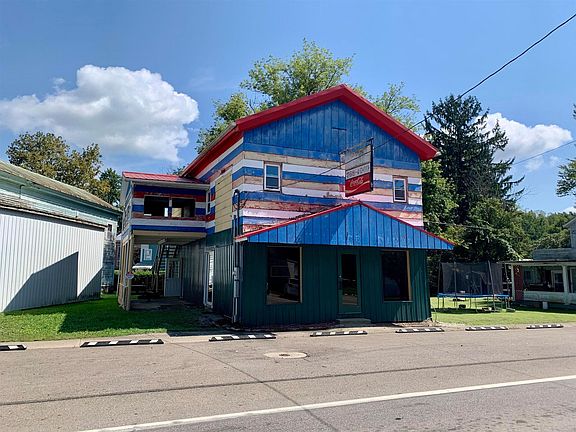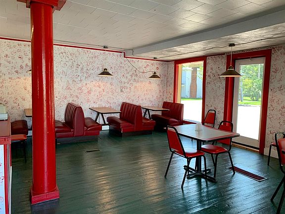 Formerly known as Kelly's Pizza in Chesterville. Bring back a pizza shop to this quaint town! All contents convey including booths, tables/chairs, cash register, pizza ovens, side by side stainless steel refrigerator, stainless steel sink, Dough Mixer, dough press, stainless steel tables, pizza pans, and more! (Seller does not warrant working condition of appliances). Half bath off kitchen for employees. Large eat in area for customers - and a side door for carry out! Half bath for public use. Upstairs you will find the start of renovation on an apartment. New windows, plumbing, and electric. Full BA with new tub. 2 BR possible, eat in kitchen area, laundry area and living room. Lots of opportunity with this building! City amenities. Selling in AS IS Condition.