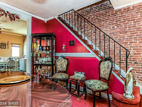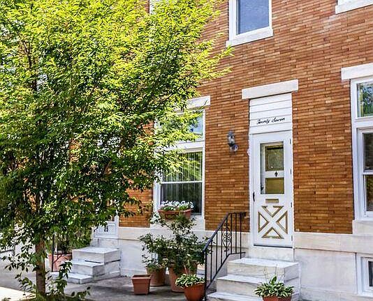 Two blocks off of Patterson Park, on a quiet block, is this brick townhome with exposed brick walls and what could be a 2 car parking pad . 13' wide townhome with pine floors, balcony off second (back) bedroom & a bath with skylight. Large eat-in kitchen and rubber roof with 18 years left on warranty. Come and enjoy city living. Any updates made will increase the value of this property greatly