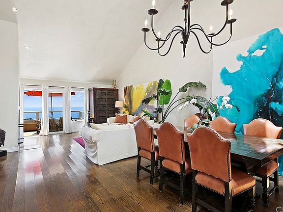 Spectacular Sunset Panoramic Unobstructed Stunning Ocean Views!!! Dream home with, expansive vistas! Spacious, vaulted ceiling, skylight and open living and dining room floor plan. The kitchen offers custom cabinetry, granite counters and upscale stainless-steel appliances. This home is finished with solid wood flooring throughout. The lower level of the house has a huge bonus great room with fireplace and wet bar. Private dual master suite on each level offers flexibility and uncompromised ocean views from either suite. Laguna Sur is resort-like guard gated community, offering pools, tennis courts and access to some of the best hiking trails. Conveniently located near shopping, restaurants, entertainment, world class resorts and beaches.