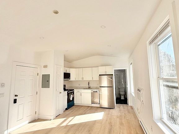 Updated photos to come! Renovated 1st floor 1 bedroom available now in a well-maintained Woburn building. This bright and modern unit features new flooring, fresh paint, and oversized windows throughout. The updated kitchen offers white cabinetry, stainless-steel appliances, and great storage with open layout style living room. The large bedroom includes a double closet with built-ins and excellent natural light. The bathroom has been fully updated with a tiled walk-in shower and contemporary finishes. Additional features include a huge fenced side yard, 1 off-street parking space, shared laundry with brand-new washer and dryer 1 door down on the same level- no stairs, & a wall-mounted AC unit for cooling. Fantastic location with a Walk Score of approximately 77 ("Very Walkable"), offering quick access to Woburn Center's shops, restaurants, grocery, parks, and public transit, with close proximity to I-93 and I-95.