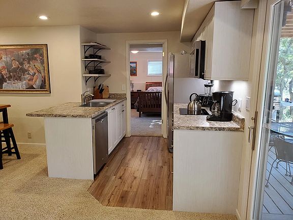 This is a garden level apartment in my home on a quiet street within a couple of blocks of the Intemann Trail system and a pleasant 1.5 mile drive/bike/walk to downtown Manitou Springs. The home is on the east side of Manitou giving it quick and easy access to the main highway while still being in the foothills of Manitou. The apartment has a great layout and is very nicely furnished. It's fully accessorized with excellent lighting and tasteful art. Entry is through a sliding glass door off a lovely private deck where you can sit and watch deer (and occasionally turkeys) lounge in the scrub oaks on most days. The kitchen has a countertop convection oven, large Ninja air fryer, full size refrigerator, built in microwave, induction stove top and an infrared grill on the deck - everything needed for the single chef. Access to the washer and dryer is via an adjoining shared hallway. Thus, this is officially a roommate arrangement, but the living quarters are otherwise completely separate and private. (the doors accessing the shared hallway are key locked on your side). Rent includes all utilities and wifi. Month to month, 3 month minimum, one month's notice.