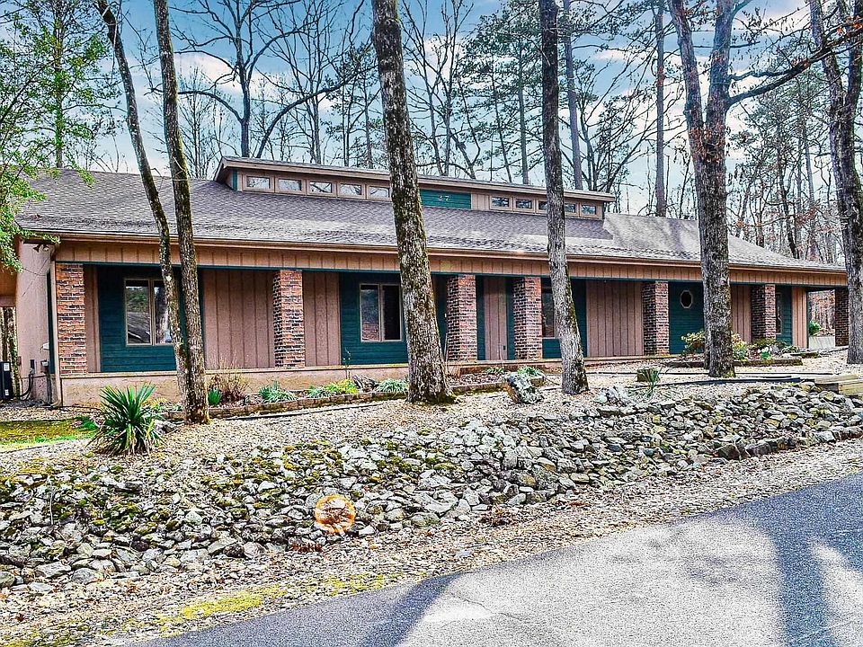 One of a kind home! 3 bed, 3 full bath, split bedrooms. Beautiful Saltillo Tile in the foyer. Large Living room with vaulted ceiling and skylights. Woodburning fireplace with brick hearth and wood storage. Kitchen & Dining area also have Saltillo tile floors. Grand kitchen with granite counters and center Maple top Island. Solid Oak cabinets. All bottom cabinets have roll out shelves. Skylight in Kitchen & Dining room as well as Lots of storage! Main bedroom is large and has coffered ceiling. Large bathroom, updated with granite vanities, One vanity on either end of the bathroom. Large walk-in shower. Walk-in closet, with access to Bonus Hobby/Craft room and Laundry. Den/Office right across from the Living room. 2 guest bedrooms are large and one has an En-Suite! 40 ft screened porch in back that looks out into the woods. This home is surrounded by Common Property on 3 sides. So no worries about anyone building next to you! Front porch spans the entire length of the front of the home. Lakes views from the front! This home has been well cared for and offers so much space all on One Level. Spacious driveway with 2 car garage. New HVAC in 2020. New Roof Dec. 23' AGENTS SEE REMARKS