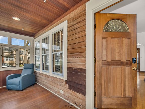 Located four blocks away from the Fox River bridge, this charming home boasts an enclosed front porch, providing an idyllic setting to savor your morning coffee or tea. Stepping inside, one is greeted by the timeless elegance of hardwood flooring throughout the first level, complemented by white cabinets decorated with crown moldings and millwork. The main floor presents a versatile space that could easily be transformed into a third bedroom, serving ideally as a home office or cozy reading nook, complete with built-in shelving, a convenient storage closet, and an inviting glass entry door. Ascending upstairs, discover two generously sized bedrooms, including the expansive primary suite, featuring an ensuite bathroom equipped with a whirlpool tub and a spacious walk-in closet. Embrace the historical charm of this 120-year-old residence set upon a double lot, offering ample outdoor space for relaxation and recreation. A detached garage provides secure parking for your vehicle, supplemented by additional storage on the secondary side, while the garage attic and attached shed cater to your organizational needs, housing tools and gardening essentials. Appreciate the seasonal delights of your very own apple tree and vibrant floral displays, which beautify the landscape during the spring and summer months. Combining original architectural details with contemporary conveniences, this former Airbnb rental is a great opportunity to invest in or live in a home within strolling distance of downtown Geneva's eclectic array of boutiques, restaurants, bars, and shopping outlets, as well as the picturesque Fox River, scenic trails, golf courses, and the Metra Station. Wired for Invisible fence. Tenant will be taking invisible Fence box, but wiring in backyard will remain. Tenant Occupied. They will be moving out upon contract to purchase.