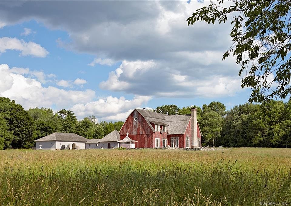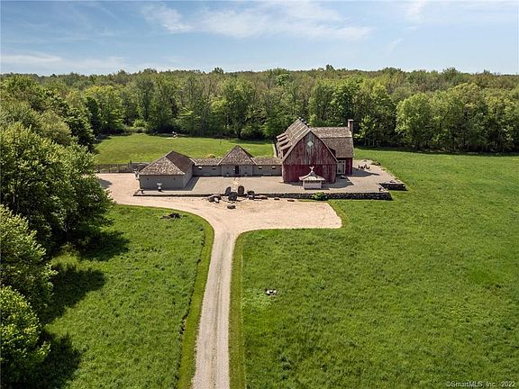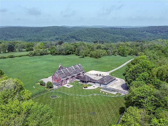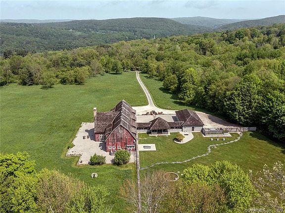 Barn style estate offered for the first time. Complete privacy with long driveway on 42 acres with expansive views to north and west. Located between Washington Depot and Lake Waramaug close to the village of New Preston. Constructed to highest standard by Jim Churchill, the barn was brought from Canada and connected to 4 car climate controlled garage by incredible covered breezeway/pergola complete with firepit and seating. Radiant heat on most of main level. First floor office, guest room with magnificent great room, dinning and kitchen. Second level primary suite and oversized office meant to be 2 bedrooms. Currently configured as 2 bedrooms but easily converted to 4. Septic already in place. Multiple locations for pool/tennis/guesthouse if desired. Stone meditation folly in field. Possible conservation easements with frontage on 2 roads. Extremely rare and special offering. Appointments required cameras in place.