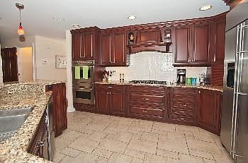 OPEN TO FAMILY ROOM WITH A WET BAR WITH REFRIG & WINE COOLER,STONE GAS FIREPLACE. MASTER SUITE HAS JACUZZI TUB AND STEAM SHOWER AND RADIANT HEATED FLOORS. THE PROPERTY IS LARGE AND LEVEL WITH SPECIMEN PLANTINGS,HOT TUB,PATIO AND DECK & SWING SET.