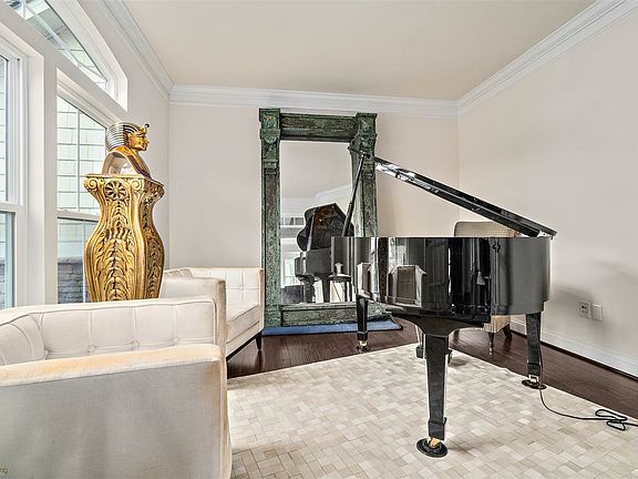Let us show you an exceptional property, located minutes from Avalon's finest beaches, that offers privacy on a rolling-green lawn and a partially wooded lot. The effortless floor plan flows beautifully throughout the home with sunlit spaces that highlight the nature's beauty that surrounds you through vast windows and doors. This beautiful residence is graced with the detail of fine custom mouldings and millwork as well as hand scraped American Walnut hardwood floors. The kitchen, an epicurean's delight with granite countertops and stainless steel appliances, is open to a large living room, fireplace and dining area. The first floor also features a music room/office/library, dining room, 1/2 bath and an additional living room. An impressive curved staircase with wrought iron spindles, leads to the second floor. The large master bedroom suite, with a coffered ceiling, is luxuriously comfortable with a spa-like bathroom and two walk-in closets. A second bedroom is ensuite, while the third and fourth bedrooms share a hallway bath. A bonus room, with a full custom tile bath, is located on the third floor. There is an oversized three-car garage attached to the house. Please call to schedule an appointment to see this one-of-a-kind property.