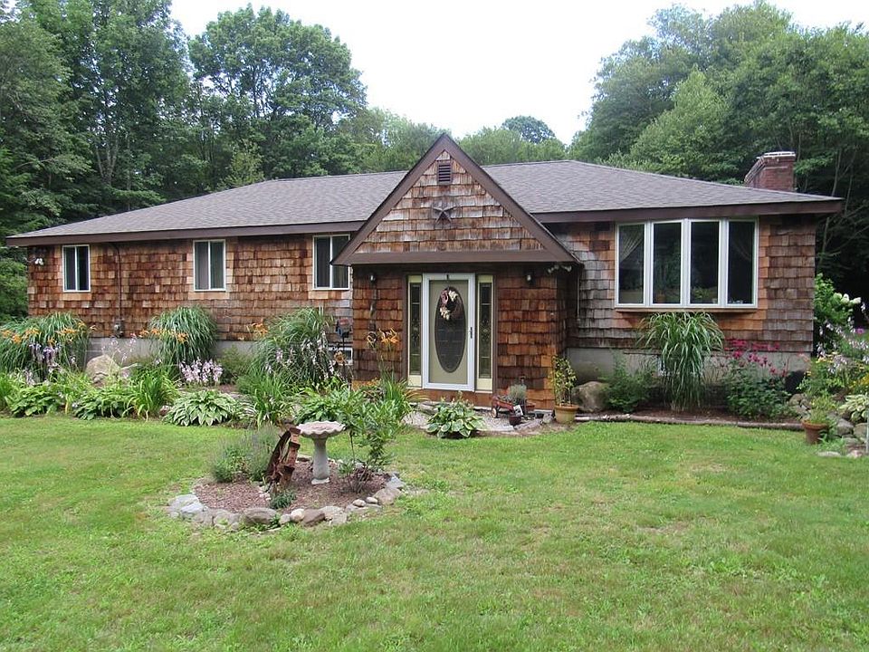 Rural setting for large, almost 2000 sf Ranch with 4 bedrooms and 2 bathrooms with open layout. Living room open to dining area and kitchen with sliders to large deck, overlooking private backyard. Updates include roof (1 year APO), new garage doors, 2 bay windows, Buderus boiler, and carpeting in bedrooms. 2 car garage with wood furnace. Full walk out basement. Passed Title V and ready for immediate occupancy!