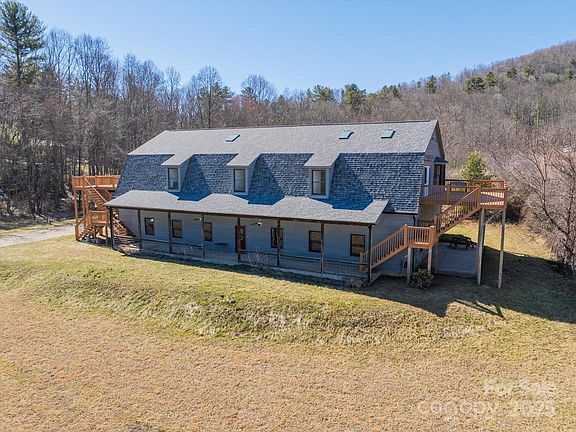 This is your opportunity to let your dreams come true. This wondeful country home is privately located in the beautiful Hoopers Creek area. This spacious home is situated on 5 acres of gentle sloping land, stream, with plenty of room for your family animals and gardens. Main level has 3BRs/2BAs, open floor plan, vaulted ceilings, stone fireplace in kitchen area with 2nd fireplace in the family room, new luxury vinyl and tile throughout. Large Master suite has jet tub and access to large deck with stunning mountain views. Lower level has a family room with 1BR and 1BA and many additional rooms for office/storage/workshops. There is a huge garage 40'x50'x13' and plenty of room to roam. This home has alot to offer inside and out, new roof, 2 new HVAC systems, new hot water heater, new light fixtures, new wiring, all new flooring upstairs, new skylights, huge deck off the kitchen, outdoor wood furnace, and walkin closets. Come tour this home today.