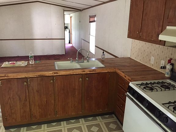 Nice front kitchen layout with breakfast bar and spacious living room.