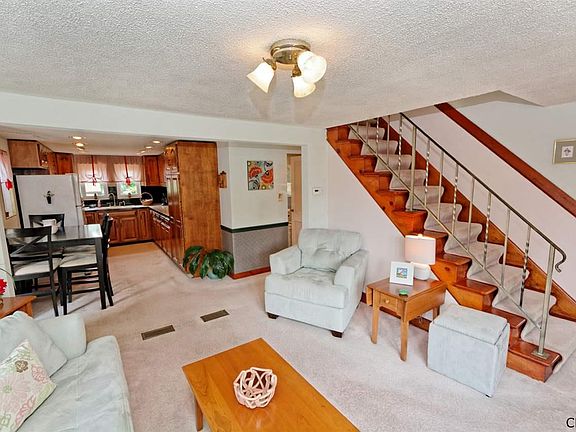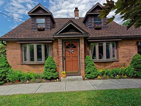 Ideal 4BR 1.5 bath solid brick cape situated on a park like setting landscaped lot w/ tons of welcoming perennials. Meticulously maintained to the highest standards. Extensive upgrades include many new windows, new roof '15, furnace & H20 tank '10. 2 BR's on 1st flr w/ built in shelving for those desiring character & warmth. HW flrs throughout. 40" cherry kitchen cab w/ dbl sink, & recessed lighting. Fin walk out bsmnt w/ rec rm area leads to a 2 tier deck w/ hot tub, arbor, & fenced yd. Walk to Blue Creek.
