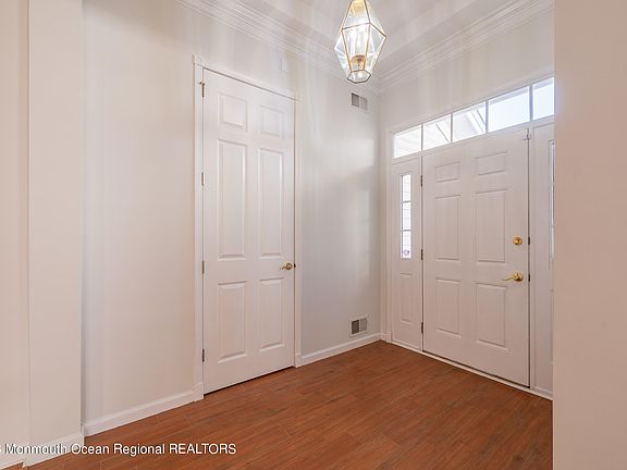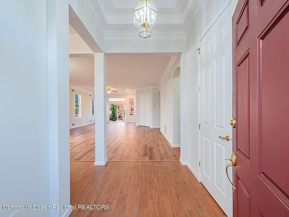 The grand foyer and soaring ceilings welcome all upon entering this home. The spacious open concept living is adorned with Crown Molding and newer flooring while natural light permeates courtesy of oversized windows. Generous 42" kitchen cabinetry maximizes storage needs while an added bonus of Shelf-Genie roll-out shelving provides easier accessibility to the back of cabinets minimizing the need for bending.