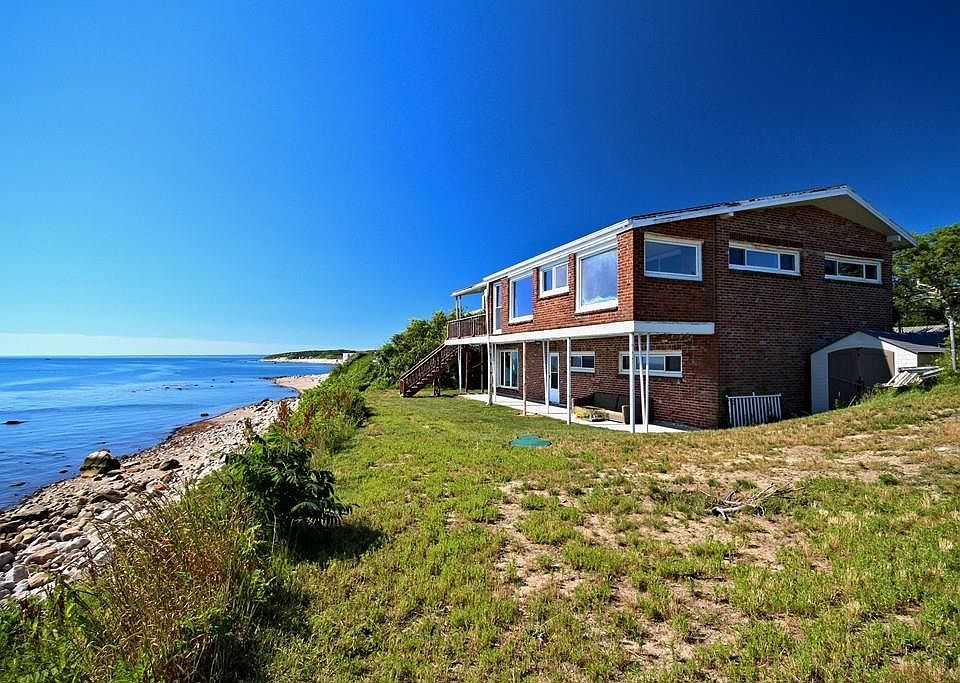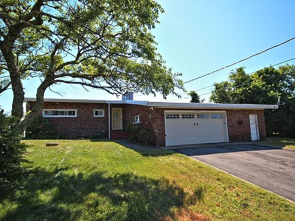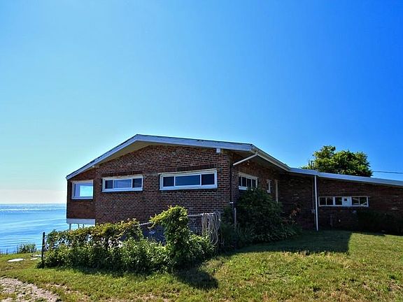 Direct oceanfront contemporary brick embankment ranch similar to a 2 family with kitchen, living room, two bedrooms and bath on both levels. Large bay windows with views from both levels, tall ceilings. Granite Block Fireplace in both living rooms. Hardwood floors throughout. Oceanviews from almost every room. Office in garage perfect for home based contractor, plenty of parking. Elevated +/- 20 feet from beach. Newer septic system. Attached two car garage with large room for work shop or office. Great opportunity for in law or a summer beach front home to share. Don't miss out, needs sprucing up, priced to sell!