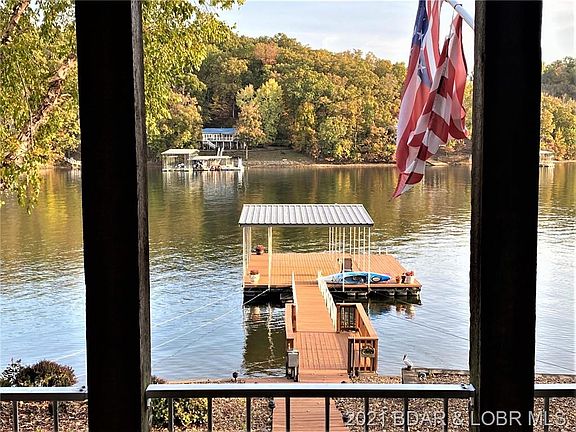 This is the location and setting that you dream of! Large deep water cove with Eastern exposure and only 5 minutes from Highway 54. Upon entering the upper loft area you are greeted by beautiful Brazilian hardwood floors and vaulted ceilings into your main level living area. Upper level features sitting area and bedroom/office. Wood stairs lead you down to your main level living area featuring open kitchen, dining, living and master suite. Easy access to your large uncovered deck overlooking the beautiful cove setting. Lower level features two more bedrooms and bath with private deck area and easy access to your unlimited dock envelope--perfect for swimming, kayaking, paddle-boarding or just handing out! This one is a gem--don't miss your opportunity to own a piece of lake paradise. Dock has been filled in but can be taken out and used as swim platform.