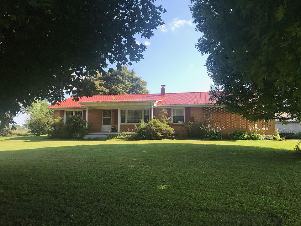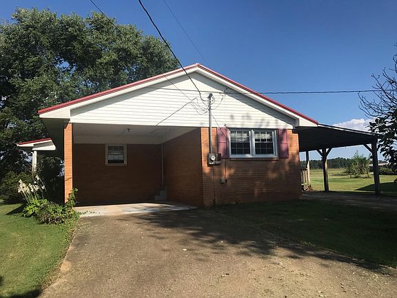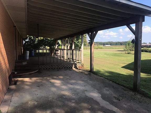 Setting on a shaded 1.59 ac. lot in the country, this all brick home has a metal roof, double pane vinyl windows, large covered back porch, central h/ac, an attached carport, a detached garage and a 3 bay shed. ~Sold As Is~