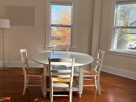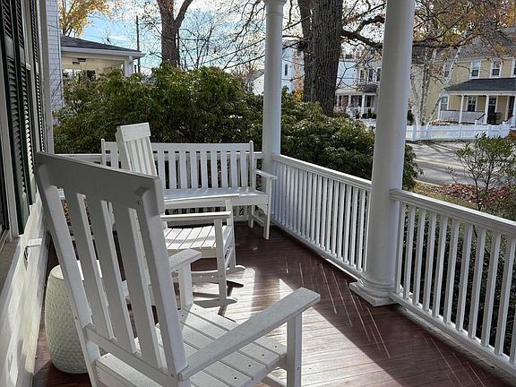 Updated and charming colonial close to schools, shops, library, dining, and everyday conveniences. This move-in-ready home features an inviting covered front porch, high ceilings, and hardwood floors throughout. The sun-filled dining room showcases a classic bay window, while the kitchen offers newer cabinetry, granite countertops, and stainless steel appliances. A large walk-up attic provides extra storage. The expansive, level backyard and two-car garage complete this rental. A true gem in a prime location. Good credit and references required.