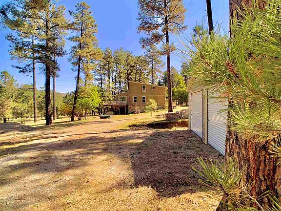 Unrestricted level 3.75 acres with spacious home and newer garage is perfect horse property & just one lot off the Ntl Forest. Home is has a beautifully finished interior with lots of updates; granite counters, maple cabinetry, gorgeous baths, fine fixtures, nice lighting. One bedroom or study & bath on main level, nice sunroom, great utility space, deck with mountain views, walk-in basement. 30'x24' garage, 30'x12' storage shed, fenced pet run. Approx 14 miles to Cloudcroft, 1/2 mile off paved road.