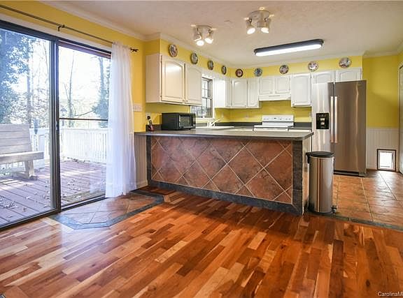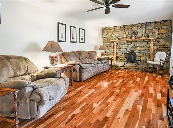 Located in beautiful Avery Creek, this home is nestled on an acre lot surrounded by mature trees and backs up to a small creek and farm. Enjoy the peaceful country setting but still close to Biltmore Park. If you are looking for a workshop, then check out the 1200 sq ft detached workshop with electric, irrigation lines, roll up door and 1/2 bath. Previously used as small engine repair shop but has multiple uses. The living room boasts a Stone accent wall, which gives you the ambiance of a mountain cabin. Spacious kitchen with large pantry , Dining area that leads to a back deck overlooking the private back yard. All bedrooms on main level. 2 laundry areas, Cedar lined closet in Primary bedroom ,lower level den /guest quarters. Metal roof. Double garage in basement plus tons of workshop /storage area.