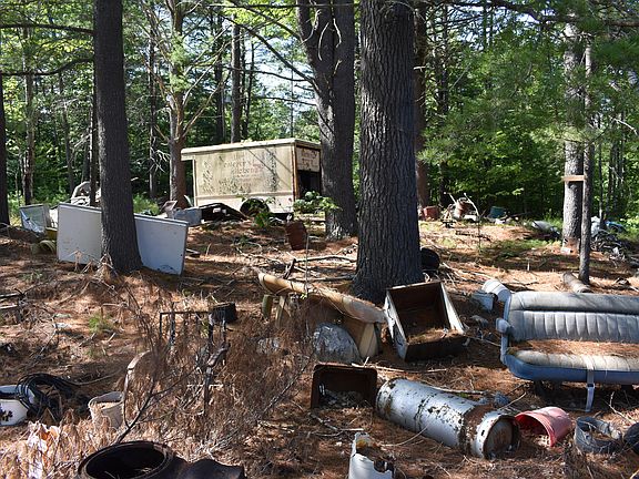 Come and see this 'diamond in the rough.' Look beyond all of the debris scattered all around the collapsed barn and homesite to find a beautiful forest on 28 acres with a fern covered meadow, mature trees (for harvesting), granite stones and a cool rippling brook. This would make a beautiful homesite. The structures are uninhabitable. There is a 120 foot drilled well and the electric is already set up and metered. The existing homesite is on ledge. At the end of the road on the left, near the brook is an old garage/shed. The travel trailer will be removed by closing.